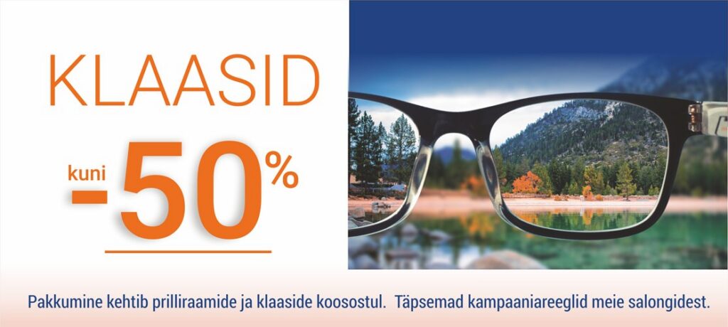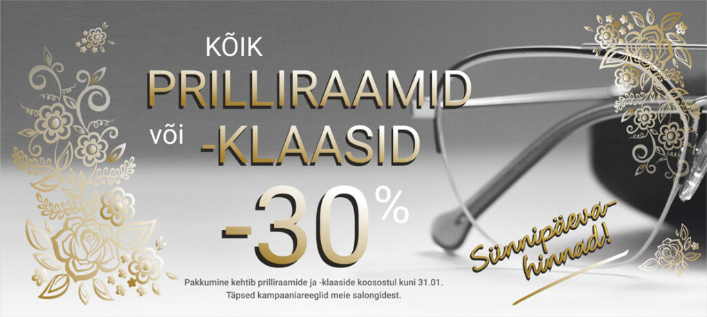 Pakkumine kehtib prilliraamide ja klaaside koosostul. Täpsemad kampaania tingimused meie müügisalongides.